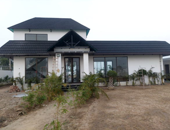 A serene and spacious farmhouse project designed for relaxation and a peaceful countryside retreat.